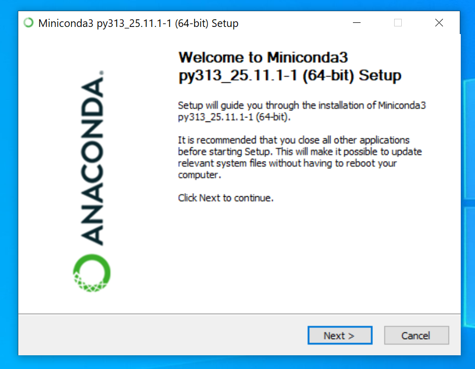 conda --versionIf everything goes well, you should see the following output, so the name conda and the currently installed version (in this case, conda 25.11.1)
